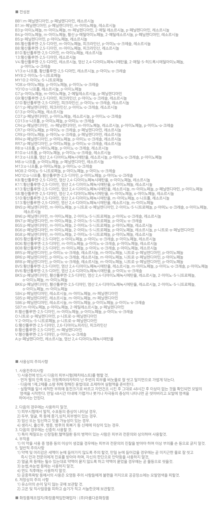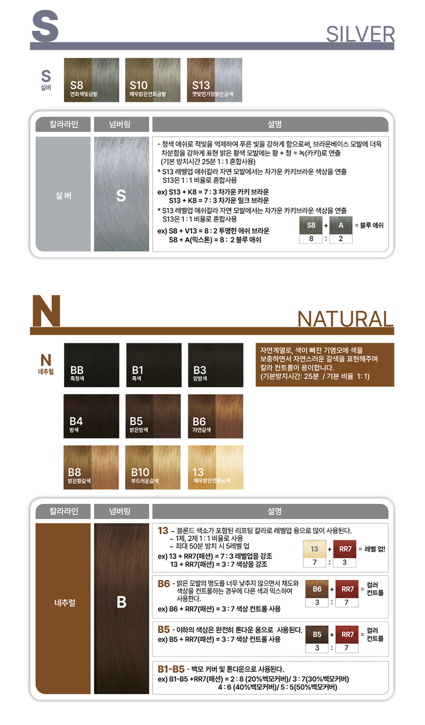 | 포장단위별 용량(중량) | 1제120ml 6개단위산화제 800ml 1개 |