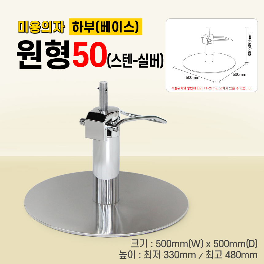 미용의자 하부(베이스) 원형50(스테인레스-실버) ◆원판지름:50cm◆