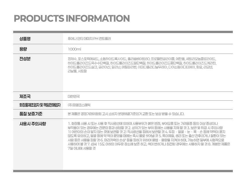 | 제조자/제조판매업자 | (주)피엘코스메틱 |