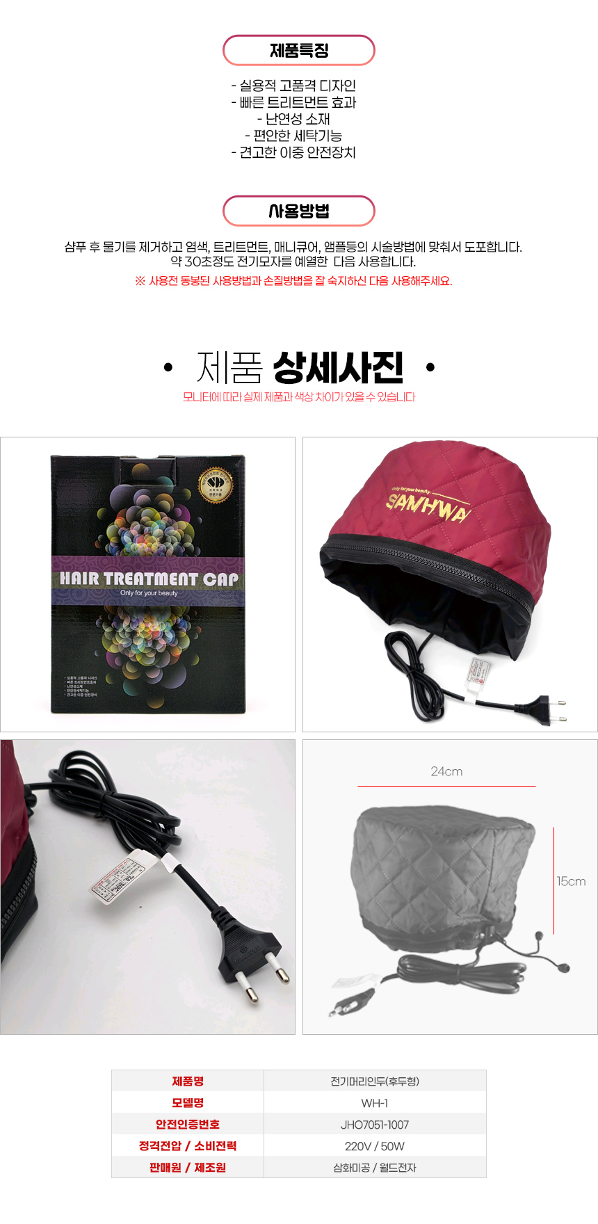 품명 및 모델명 전기 머리인두(후두형) WH-1 / JHO7051-1007