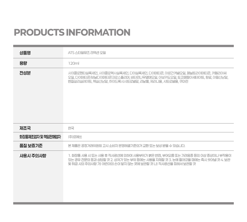 | 포장단위별 용량(중량) | 120ml |