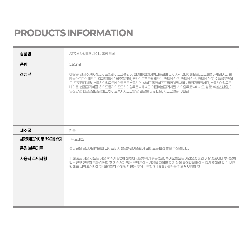 | 주요사양 | 관련사항없음-두발사용제품 해당사항 없음 |